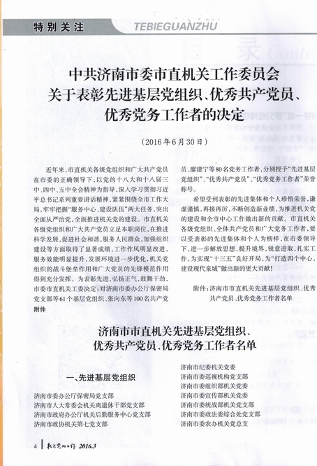 關(guān)于轉(zhuǎn)發(fā)《中共濟南市委市直機關(guān)工作委員會關(guān)于表彰先進(jìn)基層黨組織、優(yōu)秀共產(chǎn)黨員、 優(yōu)秀黨務(wù)工作者的決定》的通知