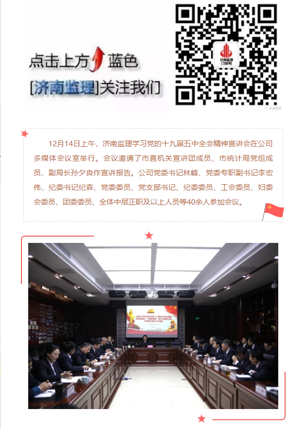 濟南監(jiān)理召開學(xué)習(xí)貫徹十九屆五中全會精神宣講會