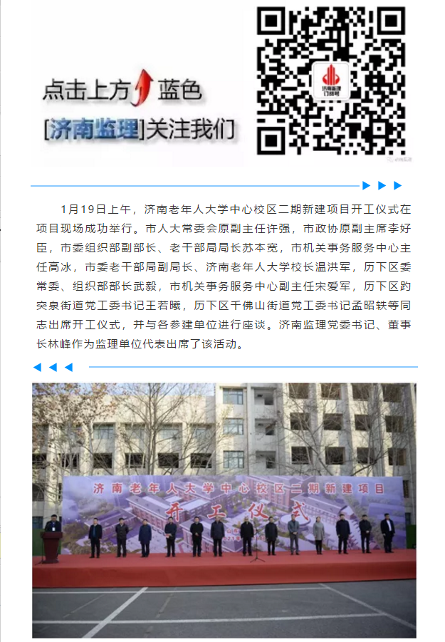 濟(jì)南監(jiān)理參加濟(jì)南老年人大學(xué)中心校區(qū)二期新建項(xiàng)目開工儀式